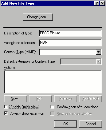 Now when you right-click on a Windows bitmap (*.BMP) file, or on an EPOC picture (*.MBM), you should get the option to convert between the two.