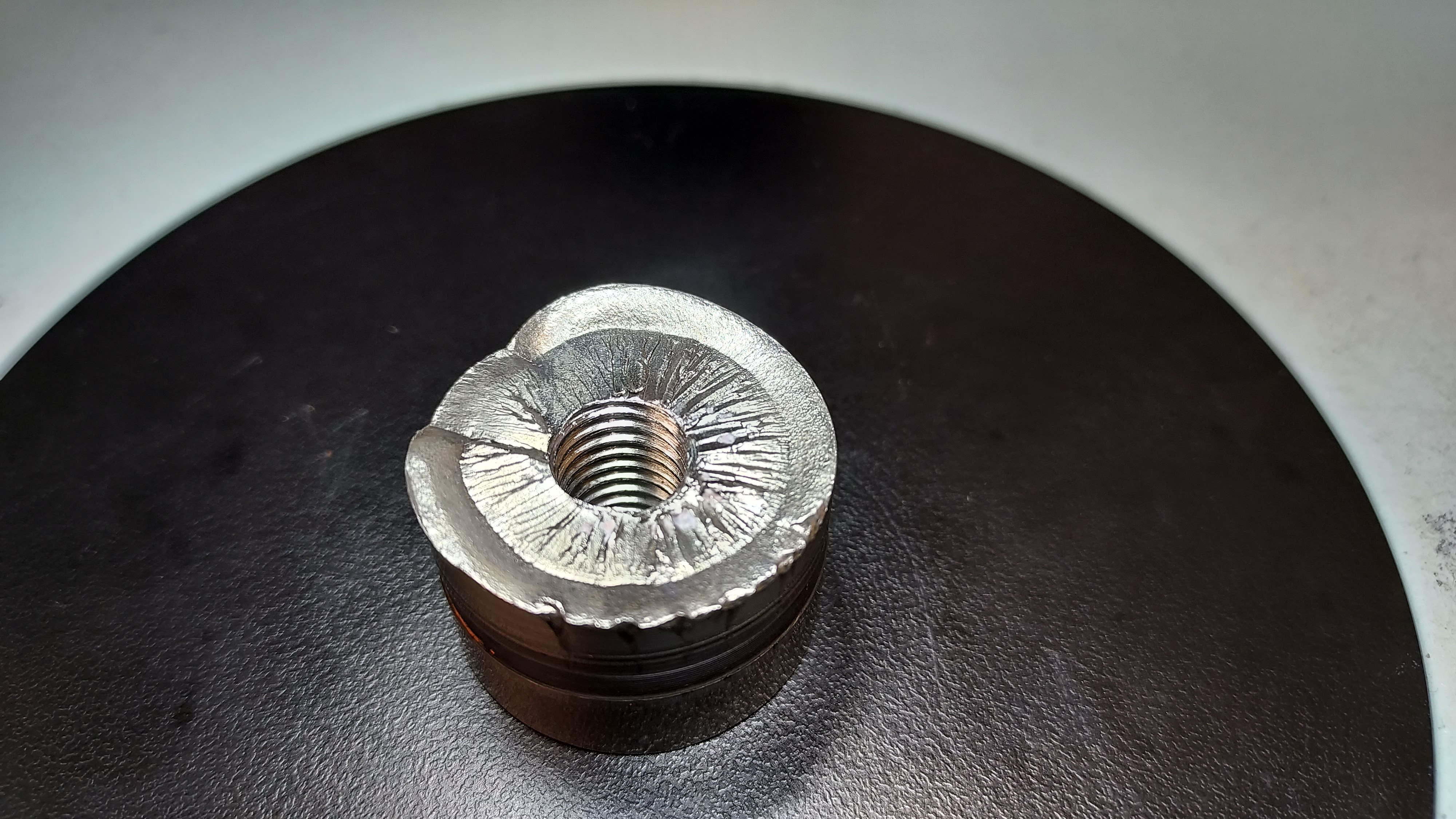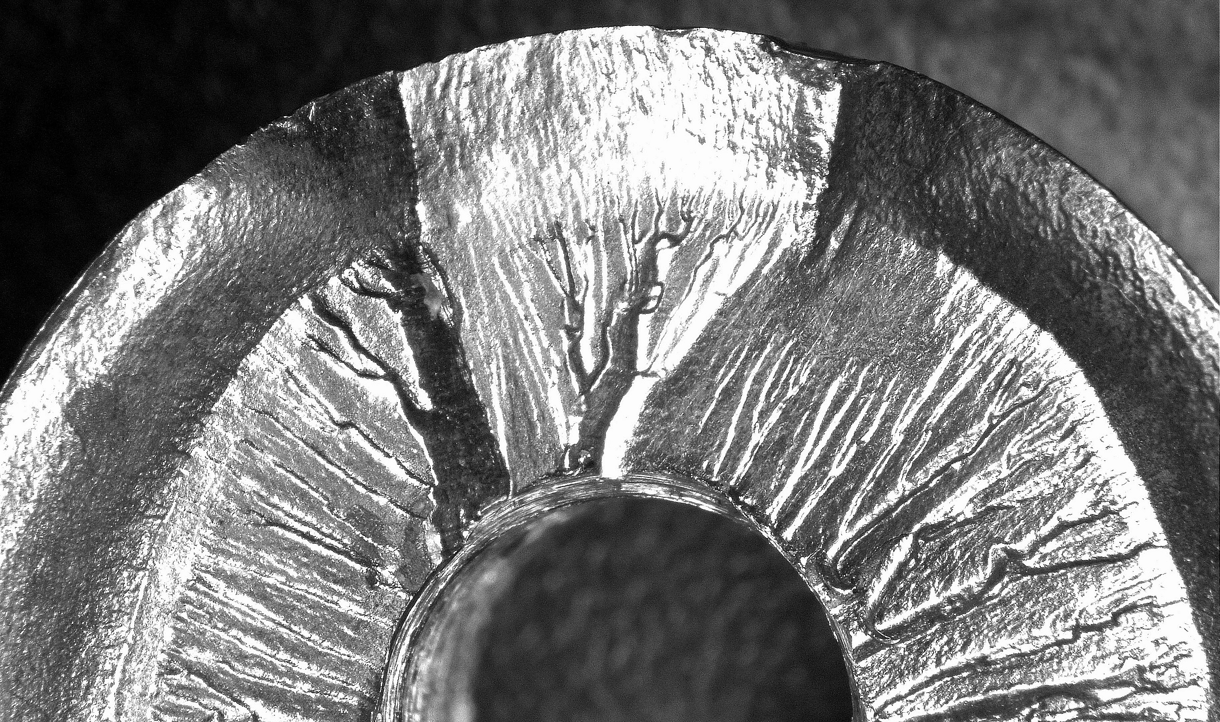 At the time, I was fairly convinced that darker region at the bottom of this photo looked like a pre-existing fatigue crack, though it doesn't look as convincing in this image as it did to the unaided eye.